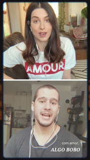 3. Vocês estão quarentenados separados mesmo? Elton: Na maior parte do tempo, sim, ou seja: não. Lola: A gente tá variando. Dias juntos e outros separados. Acho que está funcionando bem! 4. Como fazem pra manter o equilibrio? Elton: Analisar a si mesmo e refletir, mas, também aproveitar as pequenas coisas da vida. Cozinhar, estudar/treinar algo, ver séries,etc... com moderação, o que requer auto-disciplina. Lola: Não sei exatamente se tenho sabedoria pra responder essa pergunta! (Risos) As notícias são sempre MUITO difíceis de digerir, então minha estratégia é focar no que eu posso controlar. E ai são coisas bem pequenas mesmo. Tipo: posso controlar meu almoço hoje. Ótimo. Posso controlar a decisão de me educar sobre um tema que acho importante ou me engajar numa causa que me move. Legal! Posso ser responsável com a minha vida e a dos outros seguindo todas as diretrizes da OMS. Massa! Parece bobo, mas isso me dá uma sensação mínima de estabilidade que me traz mais equilíbrio. 5. Quais os aprendizados e dificuldades dessa quarentena? Elton: O aumento da consciência dos problemas que estamos vivendo no mundo, de longe é o mais importante. A gente acaba aprendendo mais por estarmos "presos", e não nos distraindo tanto. Ganhamos perspectiva do quão privilegiados nós somos, tirando cada vez mais a vontade de reclamar sobre algo. Lola: Acho que aprendizado tem a ver um pouco com minha outra resposta. Não adianta muito a gente pôr energia agora no que não está nas nossas mãos. O futuro é super incerto e pensar demais nele gera uma ansiedade que não acho positiva. Eu tento fazer o melhor que posso com o hoje que tenho. Quanto às dificuldades posso dizer que manter a agenda fitness não está fácil! (Risos) Brincadeira! Acho que a maior mesmo é a sensação absurda de impotência diante de tanta situação difícil que estamos vendo. Além disso sinto muita muita falta mesmo de poder trabalhar. Coração bate até mais murcho. 6. Vocês fizeram algum curso online? indicam algum? Elton: Fiz e recomendo um curso de Filosofia para Personagens com Sandro Conte, na "Nosso Espaço". Havia esquecido a importância da Filosofia pro nosso dia a dia, e para pessoas que gostam de escrever, analisar ou debater sobre a dramaturgia de filmes/séries/espetáculos favoritos é o curso perfeito. Lola: Não é curso, mas eu estou apaixonada por 2 canais de youtube que assisto tipo como se fosse Netflix e recomendo. Um se chama “Se Liga Nessa História” e conta com infinitas aulas de história separadas por temas! Maratonei os presidentes do Brasil e realmente a coisa sempre foi um caos aqui. E o outro é: “Tempero Drag” onde a Rita von Hunty (ícone) me dá tapas na cara diários com aulas sobre diversos temas políticos, filosóficos e culturais bastante urgentes pra nossa reflexão. Assistam, sigam ela, façam um altar pra ela na sua casa...é isso. 7. Podemos esperar mais alguma versão vindo por aí? Lola: Num se deve fazer promessas pro brasileiro nesse momento sem ter certeza que pode cumprir! (risos) Estamos fragilizados, não temos um dia de paz nessa terra! Não seria responsável da minha parte prometer isso! Mas falando de versões, antes desse último vídeo, nós fizemos uma versão pra música: "Ciranda da Bailarina" do Chico. O Elton gravou o piano e a percussão pra mim e eu fiz a letra e cantei. É um vídeo simples e mais político, mas serve também se você gosta de versões quarenteners. Tá tudo lá no IGTV mesmo. :-)